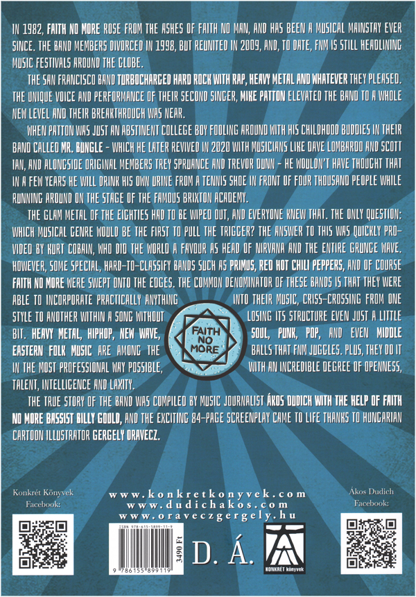 | 84 page comic book following the true story of the band which was COMPILED BY MUSIC JOURNALIST ÁKOS DUDICH WITH THE HELP OF FAITH NO MORE BASSIST BILLY GOULD and CAME TO LIFE THANKS TO HUNGARIAN CARTOON ILLUSTRATOR GERGELY ORAVECZ. First pressing is an edition of 100 copies. |